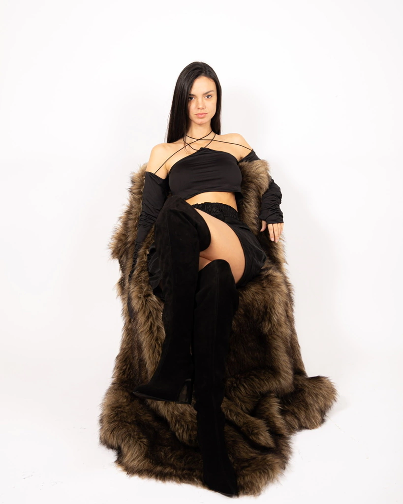 BOTA DE CUERO GAMUZA CAÑA ALTA ESTILO BUCANERA, CIERRE DE COSTADO INTERNO A MEDIA CAÑA.