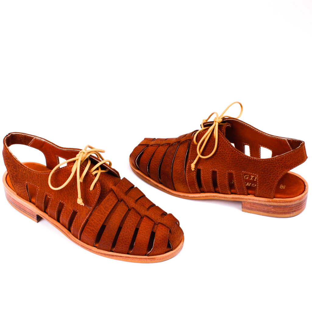 Sandalia tipo franciscana confeccionada íntegramente en cuero color suela, con cordones en capellada, forrería de cuero. Su plantilla es acolchada por lo que es súper comfy al caminar, ideal para el apoyo y descanso del pie.