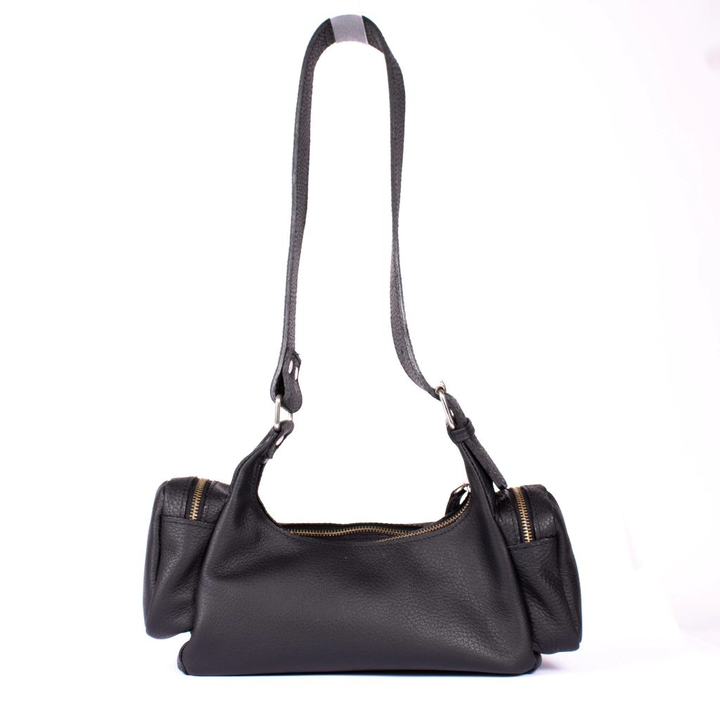 Cartera confeccionada íntegramente en cuero vacuno color negro, cuenta con un espacio de guardado principal con cierre y tres bolsillos adicionales con cierre. Sus herrajes son color niquel. Se caracterica por ser amplia y cómoda. Si estas buscando una cartera trendy donde te entre de todo, esta opción es para vos.