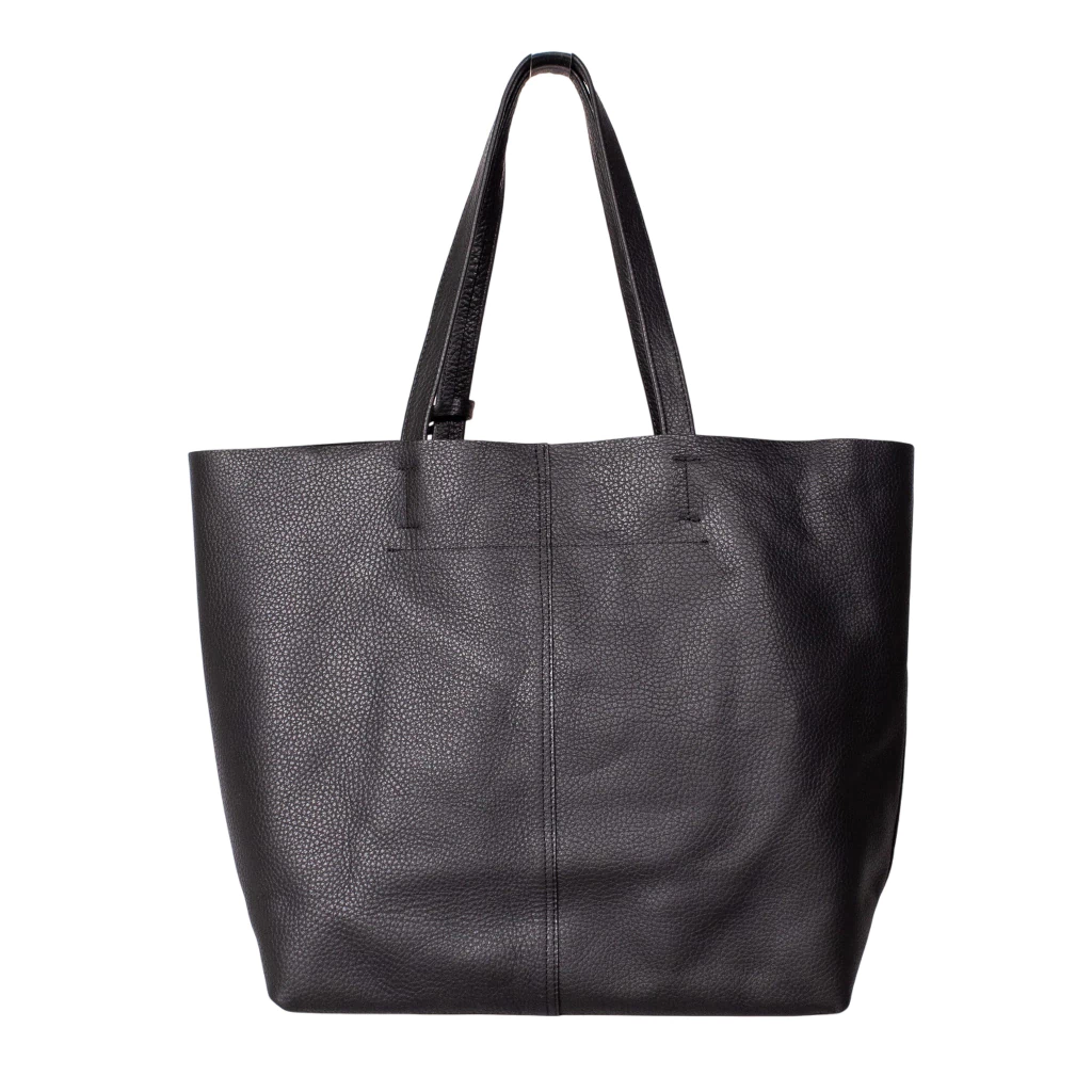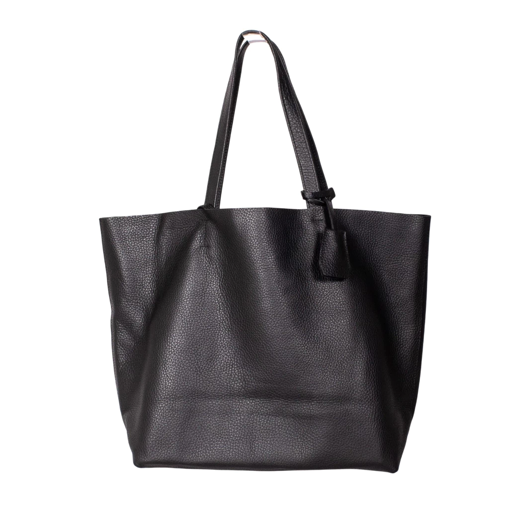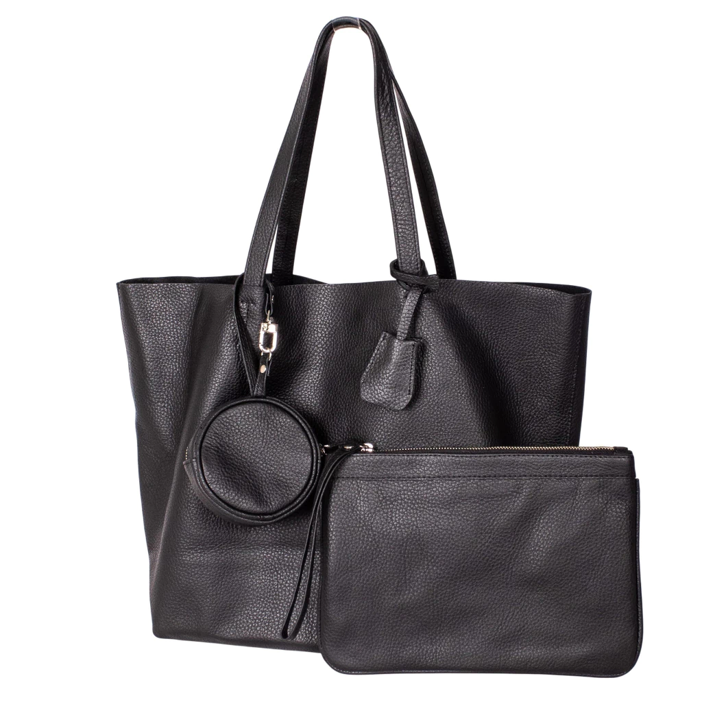 CARTERA CONFECCIONADA EN CUERO NEGRO CON BOLSA INTERNA DESMONTABLE DE CUERO CON CIERRE A TONO.